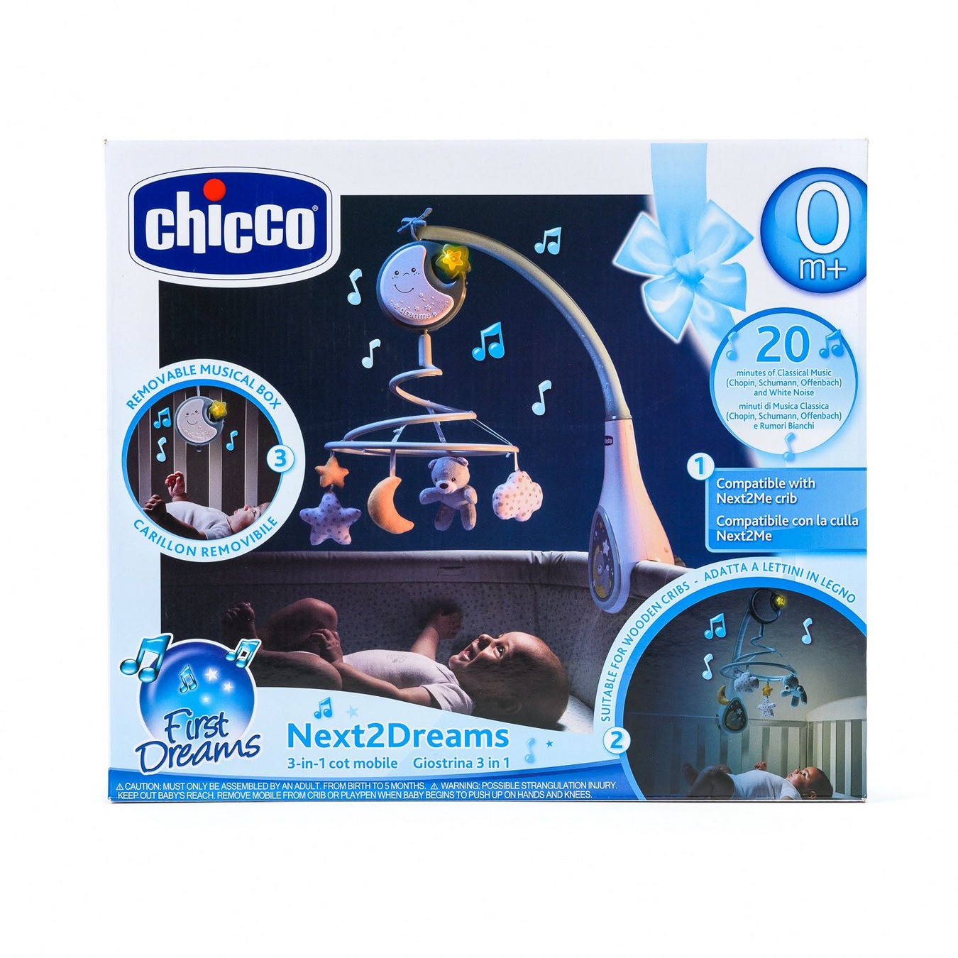 Chicco Next2Dreams vrteška kompatibilna je sa Chicco Next2Me kolevkom i sa velikim brojem drvenih krevetaca.