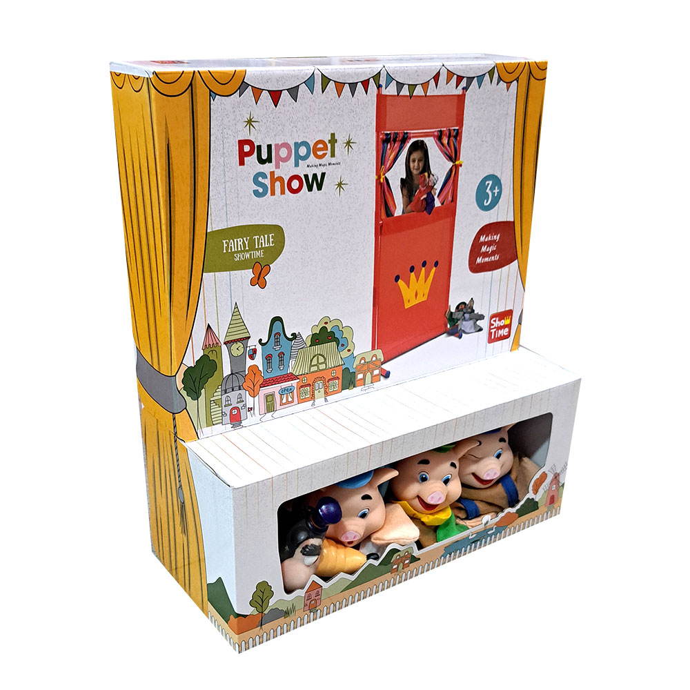 Oživi čaroliju bajke Tri praseta uz ginjol lutke za prste i svoje pozorište! Set sadrži četiri lutkica za prste – Tri praseta i Vuka – osmišljenih da podstaknu igru uloga i razvijanje govora i mašte. Uz lutke dolaze i delovi za sastavljanje sopstvenog pozorišta, tako da deca mogu osmisliti i izvesti svoju verziju omiljene bajke!