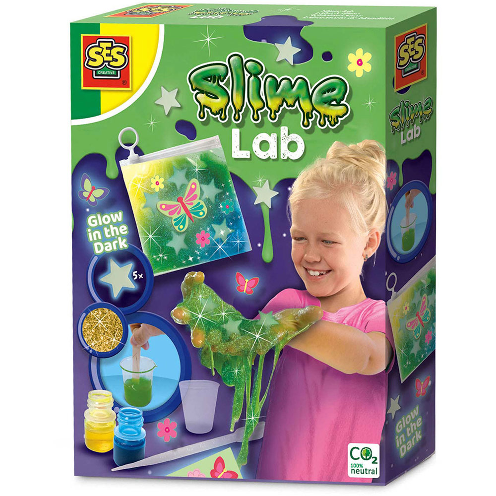 Set sadrži: Slajm prah, Žutu boju, Plavu boju, 5 svetlećih zvezda, Zlatne šljokice, Svetleće nalepnice, Čašicu, Štapić za mešanje, Pipetu, Uputstvo za upotrebu. Uzrast: 8+. Dimenzije pakovanja: 20 x 15 x 4 cm.