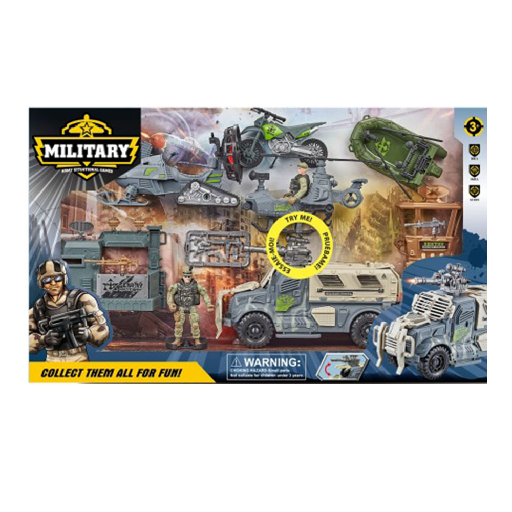 Set sadrži sve što vam je potrebno za pravi vojni poduhvat: od vojnog kombija sa svetlom i zvukom, preko dva vojnička helikoptera, do čamca, motora i dodatne opreme za vojnike. Tu su i dve figurice vojnika, obučenih u punu opremu, spremni za akciju. Set dolazi i sa visokom izvidnicom sa kamerom koja omogućava vojnicima da…
